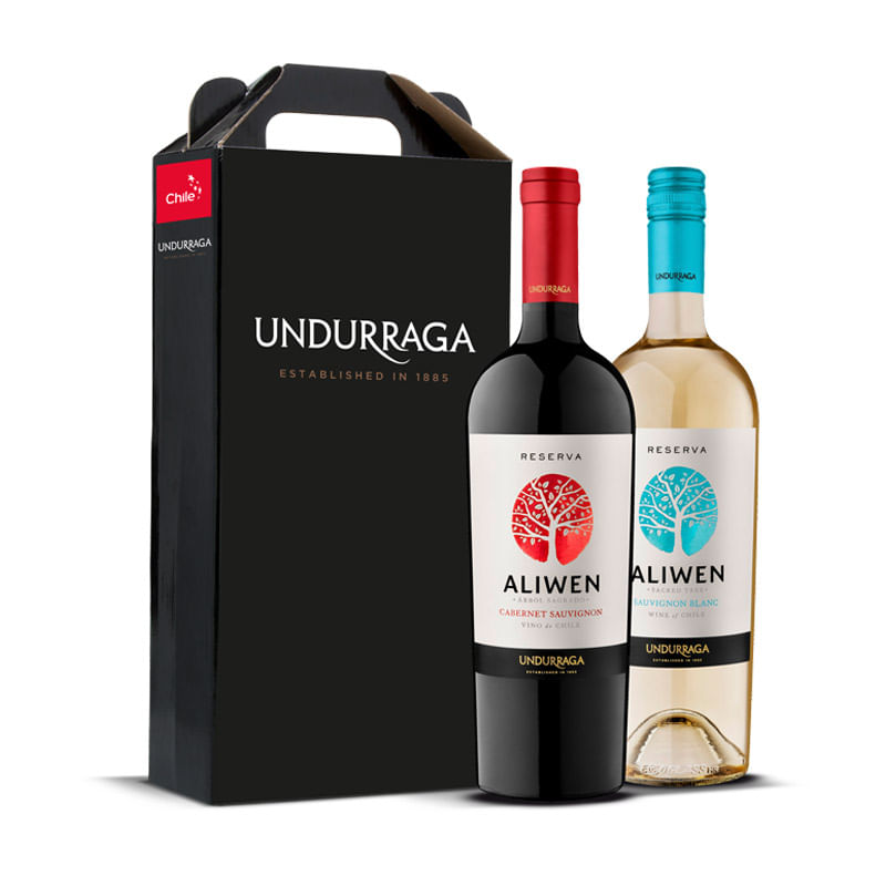 En este pack podrás disfrutar de un vino blanco y un vino tinto de nuestra línea Reserva Aliwen.